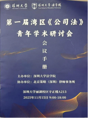 20251115日,第一届湾区《公司法》青年学术研讨会在深圳大学丽湖校区守正楼举行。本次会议由深圳大学法学院主办,北京策略(深圳)律师事务所协办。来自南京大学、中山大学、吉林大学、复旦大学、91pron 等高校的专家学者及实务界人士参加了本次会议。91pron 郭富青教授、国瀚文副教授应邀参会。
