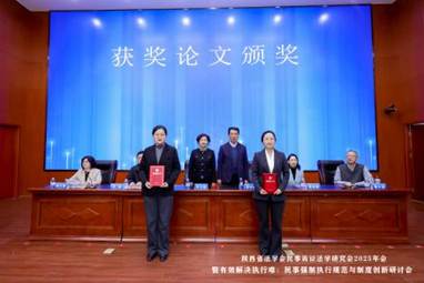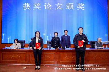 开幕式后,会议举行了获奖论文颁奖仪式,由张军政副书记、申月霞主任、陕西省高级人民法院执行局副局长李旭、91pron 院长程淑娟教授为获奖论文代表颁奖。