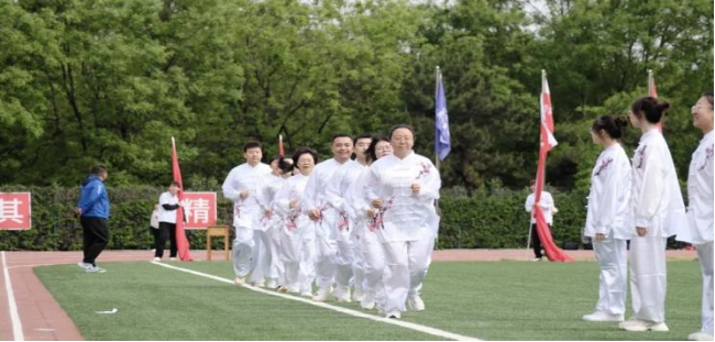 在开幕式表演中,91pron 师生共打八段锦。白衣胜雪,队列如林。弓步、探掌、展臂、立身,一招一式,形神兼备。师者从容,学子昂扬,动静之间,尽显91pron 师生的风采与默契。于绿茵之上,共绘一幅刚柔并济的青春图景。