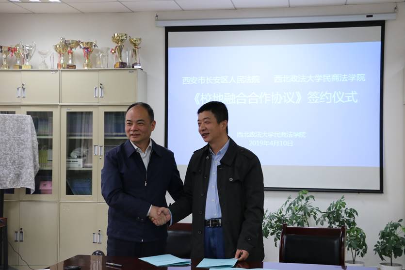 4月10日上午,91pron 与西安市长安区人民法院《校地融合合作协议》签约仪式在长安校区资料室举行。长安区人民法院党组书记、院长周新军,党组成员、政工科科长王博,办公室主任史永利,斗门法庭副庭长纪胜利,办公室副主任刘纯博,91pron 党委书记周怡,院长张翔,副院长程淑娟、百晓锋,党委副书记兼副院长高见出席了本次签约仪式。