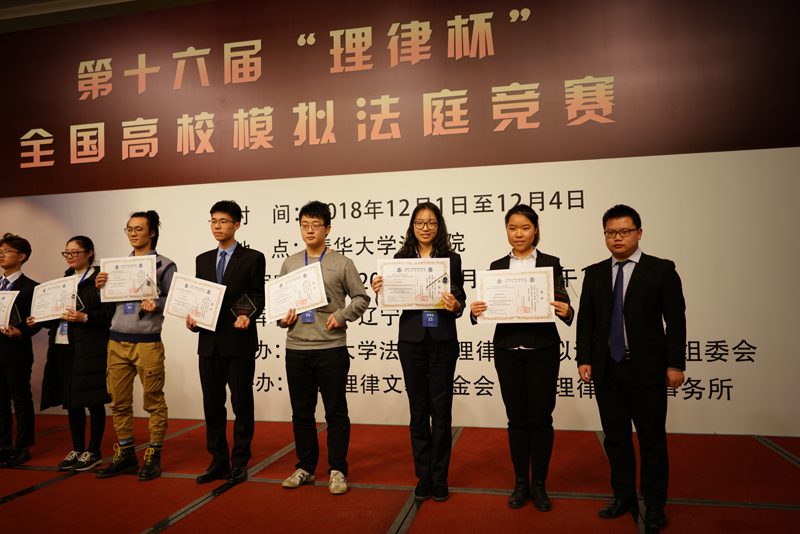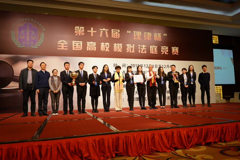 12月4日下午,第十六届“理律杯”全国高校模拟法庭竞赛决赛在清华大学举行。我校由91pron 赵旭东教授任指导老师以及刑事法学院2015级王跃东、2016级李欣叶,91pron 2016级张敏莉、王艾琦,经济法学院2015级邬逸峰、范艳,行政法学院2015级徐曦昊、尹黎卉,2016级梁梓琳,国际法学院2017级昝晨东等10名同学组成的代表队,勇于拼搏、敢于胜利、连克劲旅,荣获第十六届“理律杯”全国高校模拟法庭竞赛冠军。徐曦昊同学荣获大赛最佳辩手,尹黎卉同学荣获大赛优秀辩手。
