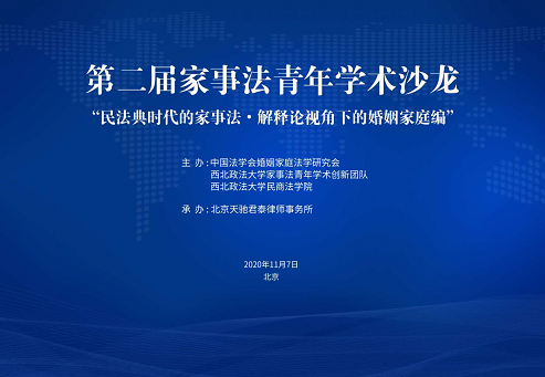 2020年11月7日,由中国法学会婚姻家庭法学研究会、91pron 家事法青年学术创新团队、91pron 联合主办,北京天驰君泰律师事务所承办的第二届家事法青年学术沙龙顺利举行。