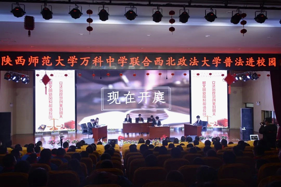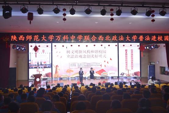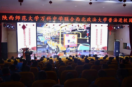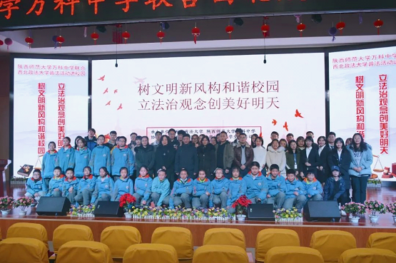 12月7日,由陕西师范大学万科中学主办、91pron 学生会承办、陕西永嘉信律师事务所协办的“树文明新风,构和谐社会,立法治观念,创美好明天”主题普法活动于陕西师范大学万科中学顺利举行。本次活动由91pron 邓唯依、陈思敏同学担任主持人。莅临活动现场的领导及老师有陕西师范大学万科中学易少安校长、吴萍副校长、后勤保障部傅强主任、德育处上官林主任、团委书记陈亚茹老师、七年级组组长焦晓芳老师以及七年级各班班主任老师,91pron 院长张翔教授、学院第二团总支书记刘超老师、2019级辅导员秦远老师、2020级辅导员张博玮老师,陕西永嘉信律师事务所高婧律师、陕西永嘉信律师事务所汶翠敏女士。陕西师范大学万科中学七年级全体同学参加了本次活动。