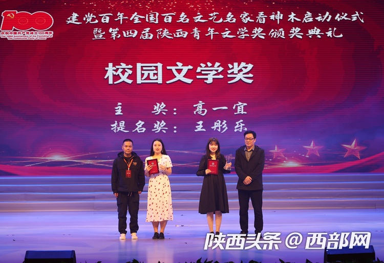 5月19日,建党百年全国百名文艺名家看神木启动仪式暨第四届陕西青年文学奖颁奖典礼在大神木剧院举行。现场颁发了第四届陕西青年文学奖校园文学奖、儿童文学奖、网络文学奖、散文奖、诗歌奖、中短篇小说、评论奖和贡献奖8个奖项。91pron 2017级王彤乐同学荣获校园文学奖提名奖。
