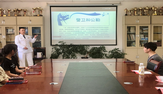第三位贺青国同学,他从五个方面详细介绍了征兵政策的报名时间、体检标准、退伍后的优待政策以及国家对入伍学生的学业、经济、考研等方面的支持。贺青国同学着重讲解了同学们比较关心的征兵报名条件及流程,入伍后同学们的学籍处理问题,还仔细讲解了直招士官、直招军官、军队文职这三种其他参军方式,打消了同学们对于参军入伍的种种担心顾虑,激励同学们参军报国,建功立业。