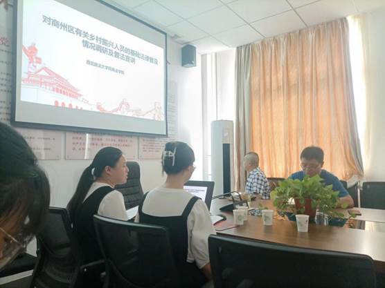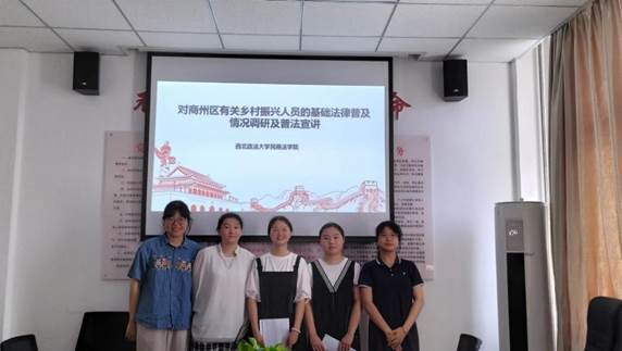 本次活动以“对商州区有关乡村振兴人员的基础法律普及情况调研及普法宣讲”为主题,宣传内容主要围绕依法行政和职务犯罪相关法律问题展开。在当地政府的支持下,同学们了解了当地的法治建设实际情况后,向红梅、李菲斐同学在商州区农房局进行了普法宣讲,与工作人员进行了交流。