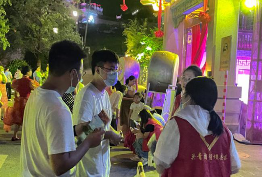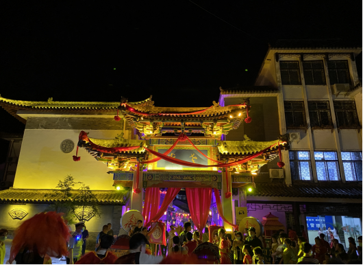 留坝老街可以追溯到嘉庆年间,现在已经成为当地标志性的古镇风情街。调研队开展调研的时间正值留坝暑期双节,当天留坝老街举行“秦岭之夜”表演,老街上人头攒动,热闹非凡。调研组和当地志愿者沟通交流后了解到,留坝“秦岭之夜”是留坝县倾力打造的文艺精品,表演具有浓郁的地方特色,充满汉风古韵,真实地再现了留坝的历史风貌和当地风土人情。