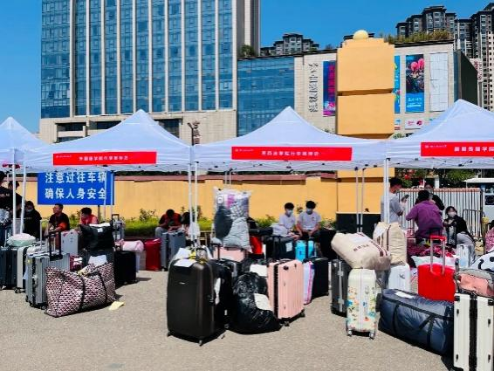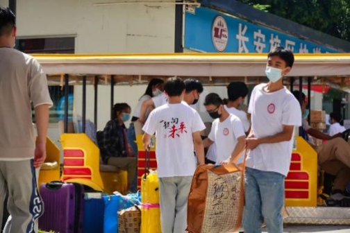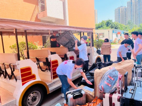 结合实际情况,学院在校内设置了三处行李寄存转运服务点,同时安排了三班志愿者不间断为新生提供服务。在东门设置了行李寄存点,由辅导员老师带领志愿者将新生的行李搬运至摆渡车上。在9、10号楼中间设置行李搬运点,将摆渡车上的行李搬运至宿舍楼下。同时,在新生住宿的9号楼及12B楼下设置行李搬运点,帮助2022级新生将行李搬运至学生宿舍。在学院辅导员的带领下,志愿者们有序协作,积极为独自入学的新生们排疑解难,给萌新们提供了最周到的服务。